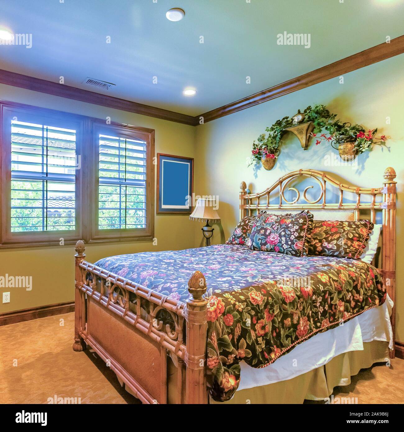Luxury Bedroom In California With Orange Warm Lighting And Carpet