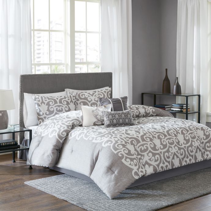 Lotus Comforter Set In Grey White Bed Bath Beyond
