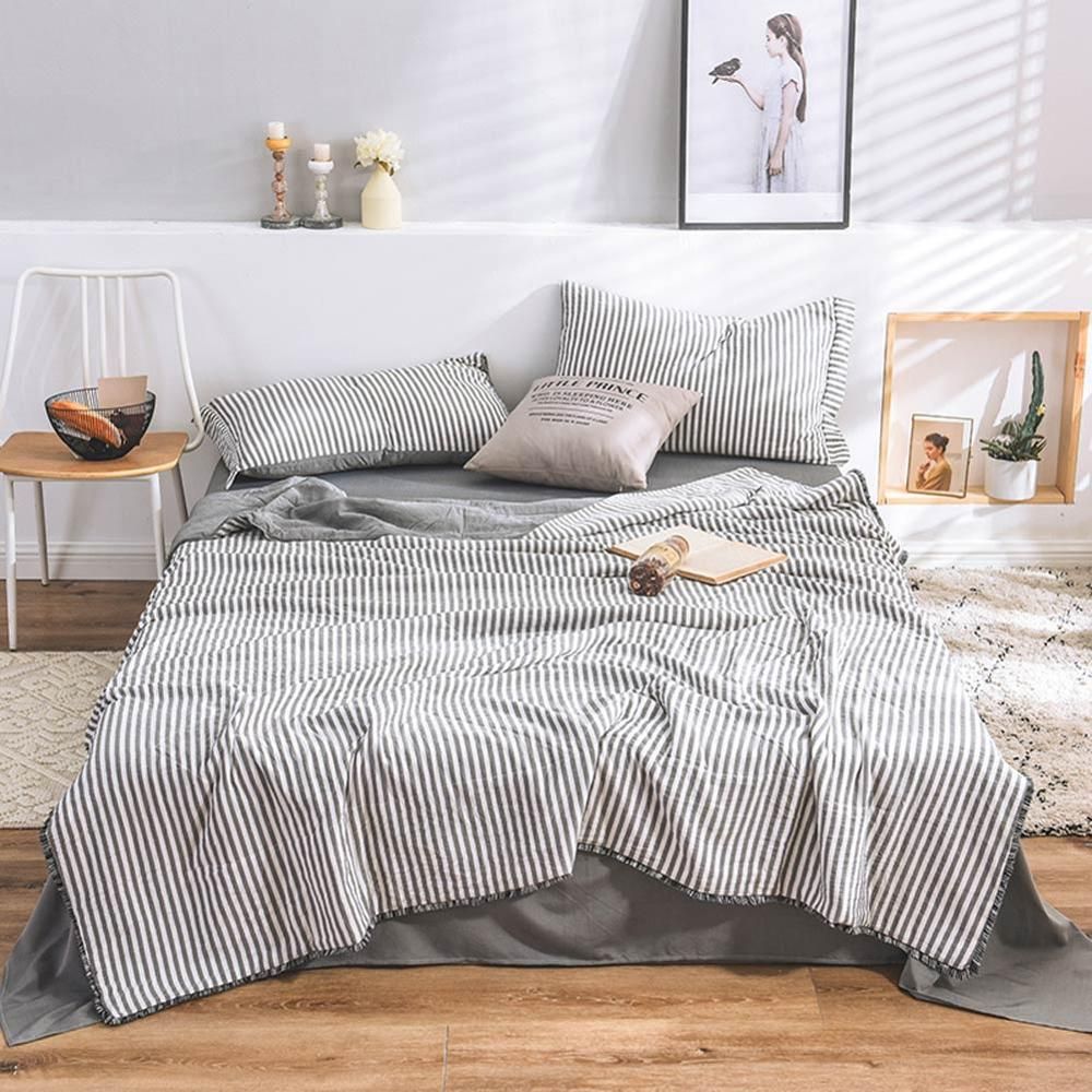 2019 Grey White Stripes Ins Thin Summer Comforter Bedding Sets