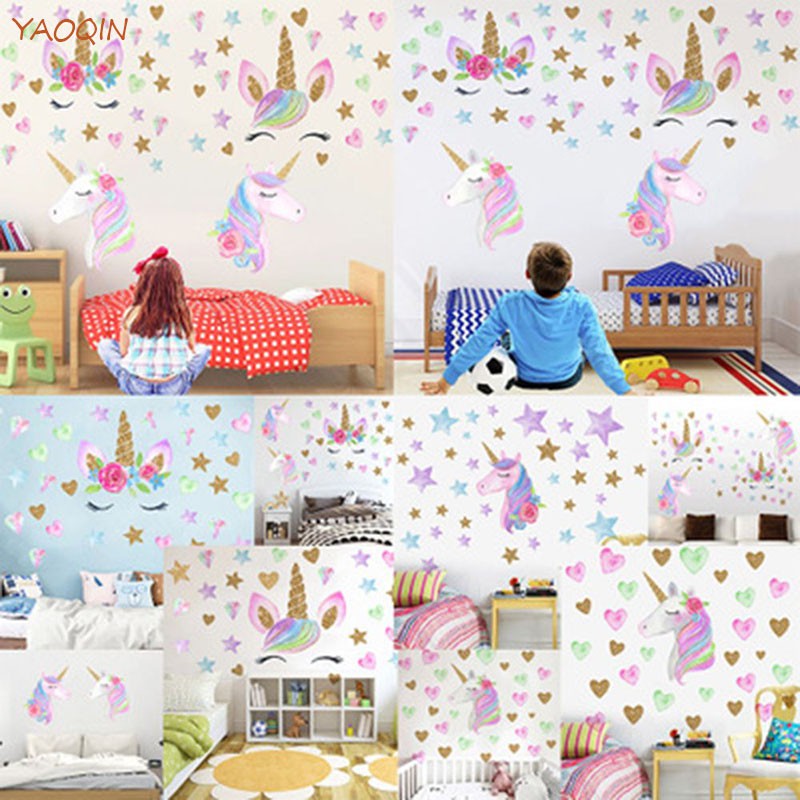 Kids Room Decoration Hot Fantasy Unicorn Stars Rainbow Wall