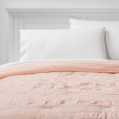 Full Queen Crinkle Texture Comforter Blush Peach Room Essentials
