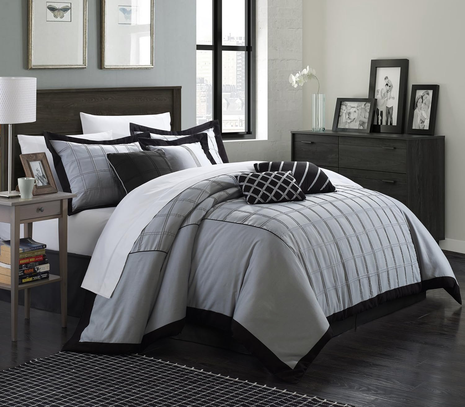 Amazon Com Chic Home 8 Piece Rhodes Pintuck Color Block Comforter